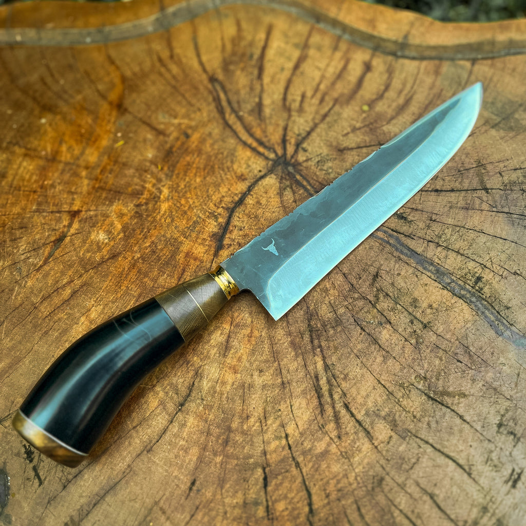 Na Cutelaria Bianco, oferecemos a chance única de personalizar sua faca com uma gravação a laser do seu nome, tornando-a verdadeiramente sua. Cada faca é uma obra de arte, forjada à moda antiga, garantindo não só um fio duradouro mas também uma experiência de corte ancestral.