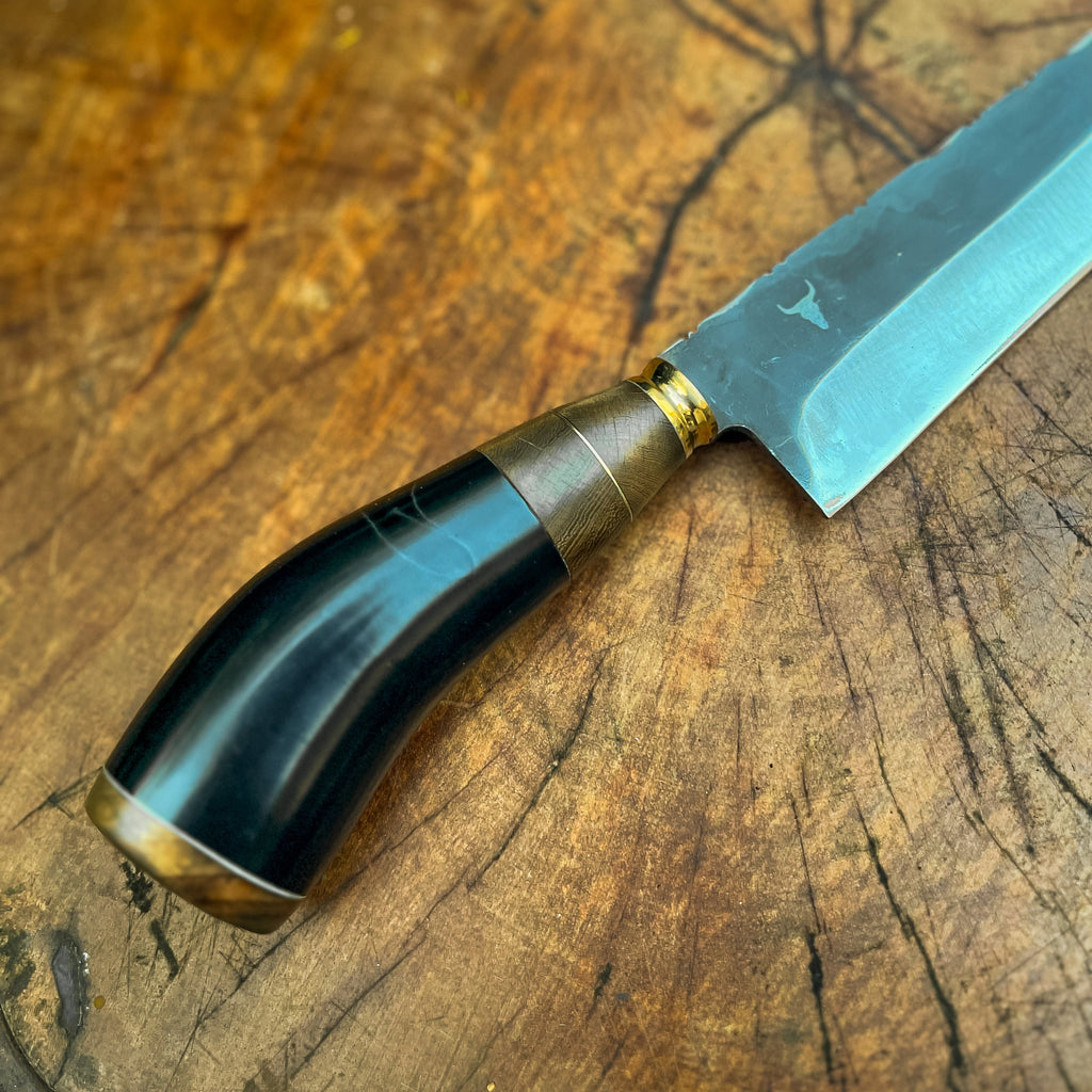 - Cabo em chifre de bufalo e couro : Combinação esclusiva, garantindo beleza e durabilidade excepcionais ao cabo