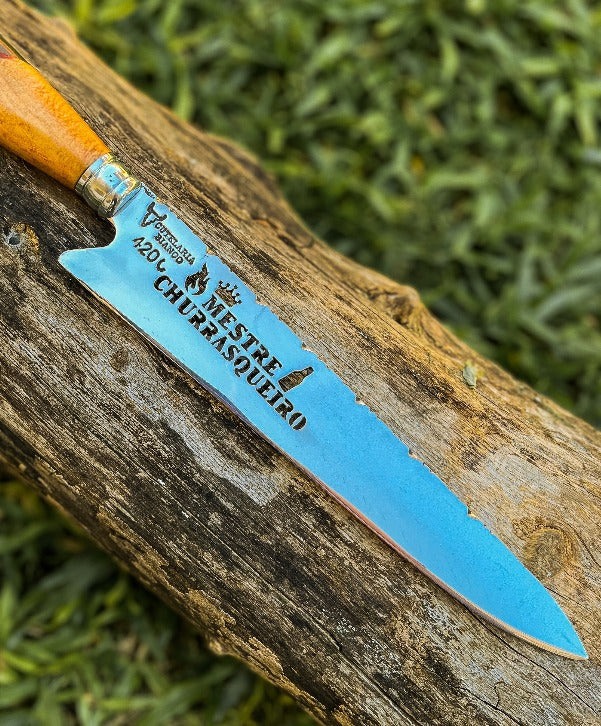 Projetada para churrasqueiros experientes e amadores a Faca Artesanal Mestre Churrasqueiro e a solução ideal para o seu churrasco ou presentar alguém especial