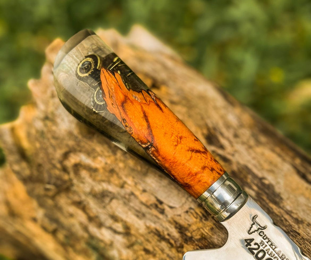 Personalização: Com vários modelos de lâmina disponíveis e gravação a laser personalizada, a faca artesanal se torna um item único e especial para o comprador ou para presentear alguém.