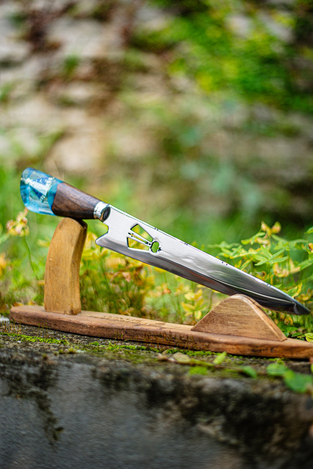 Lâmina: 10 polegadas, em aço alemão forjado 420C, desenvolvido especificamente para cutelaria de alta performance, oferecendo cortes precisos e durabilidade extrema.