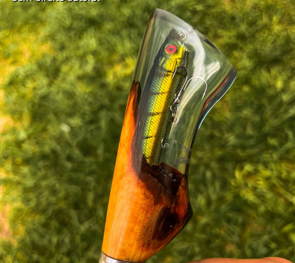 Neste modelo, uma isca artificial de pesca, importada e estrategicamente inserida no núcleo do cristal líquido, faz mais do que surpreender: ela celebra a estética do esporte e a paixão daqueles que vivem para o próximo grande desafio. Um tributo visual ao universo dos grandes pescadores esportivos — onde técnica, estilo e emoção caminham lado a lado.