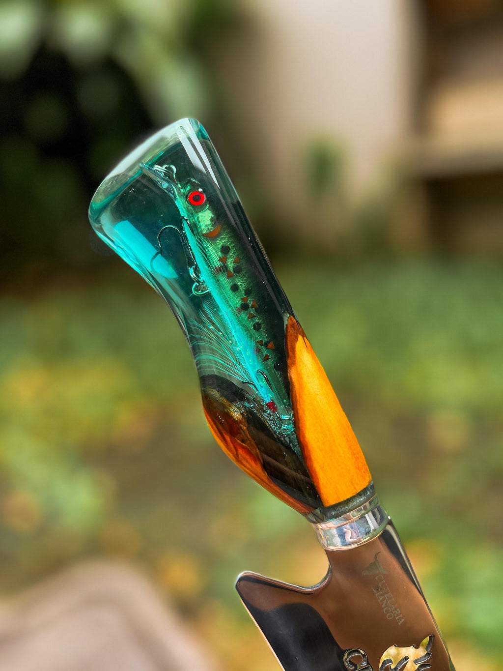 Seu cabo, batizado de “Attimo Eterno”, é uma fusão precisa entre a solidez da madeira nobre brasileira e a elegância translúcida da resina italiana. Uma combinação atemporal, concebida para despertar não apenas o olhar, mas a memória sensorial de quem conhece o valor da autenticidade.
